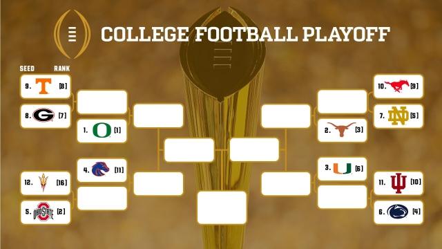 Here’s what the College Football Playoff bracket looks like, using only the selection committee’s rankings from Nov. 26. This is not a projection of how things could look — only what the rankings are now and how that forms the bracket.
